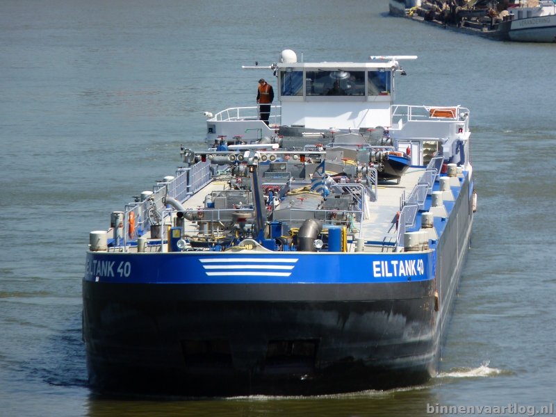 Eiltank 40 , 85,98 x 9,60 x 3,10 , 1627 ton , Bouwjaar 2009 , Werf Groningen Shipyard in Waterhuizen ( Nederland ) en Afbouwwerf Neue Ruhrorter Schiffswerft in Dbg. Ruhrort ( Duitsland ) , 1278 pk Mitsubishi en 380 pk – Verhaar Omega boegschroef , eigenaar Jaegers Reederij GmbH in Duisburg , ENI 04807330