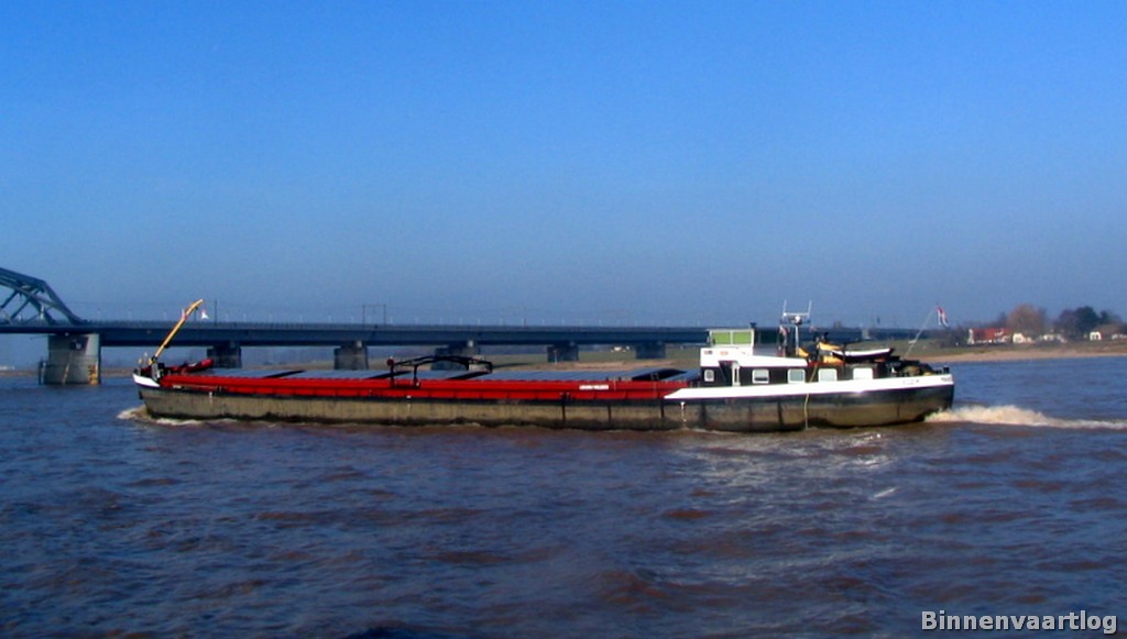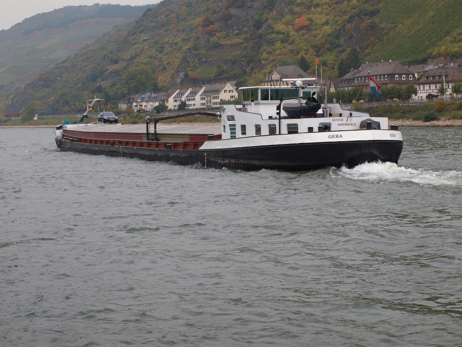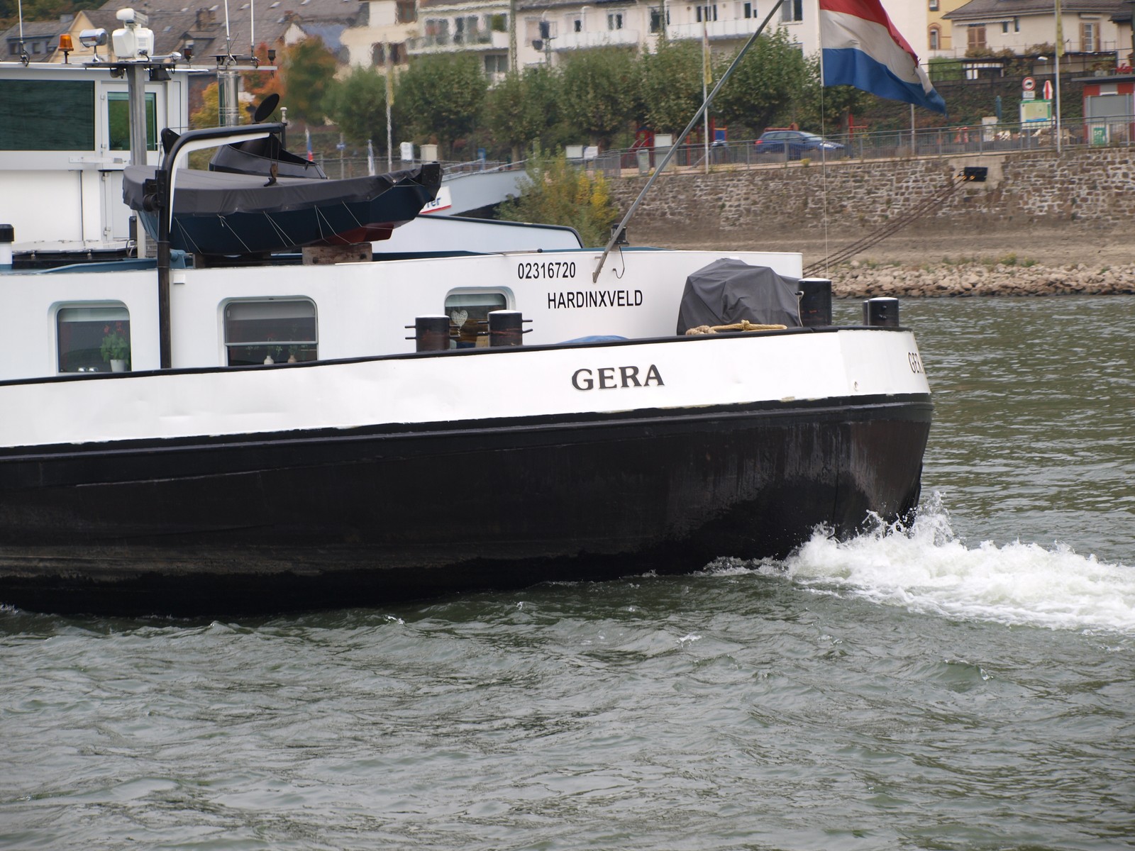 Gera , 79,95 x 9,56 x 2,74 , 1378 ton , Bouwjaar 1961 , Pattje in Waterhuizen ( Nederland ) , 1200 pk Mitsubishi en 270 pk DAF boegschroef , ex Navexmotor 15 , ex Navex 15 , ex BRT 15 , ex Navex 15 , ex van Uden 19 , ex Eliz M , ex Delftrans , eigenaar Vof Gera in Hardinxveld , ENI 02316720.