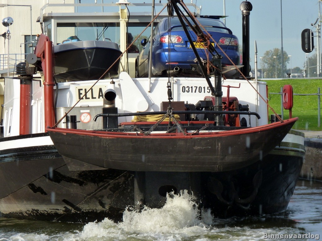 Ella , 50,00 x 6,64 x 2,37 , 517 ton , Bouwjaar 1928 , Werf De Korte in Moerdijk ( Nederland ) , 354 pk Mercedes , ex Elizabeth , ex Elcahead , ex Nooit Gedacht , ex Astria , eigenaar A.P. de Voogd – v/d Straaten in Tholen , ENI 03170150