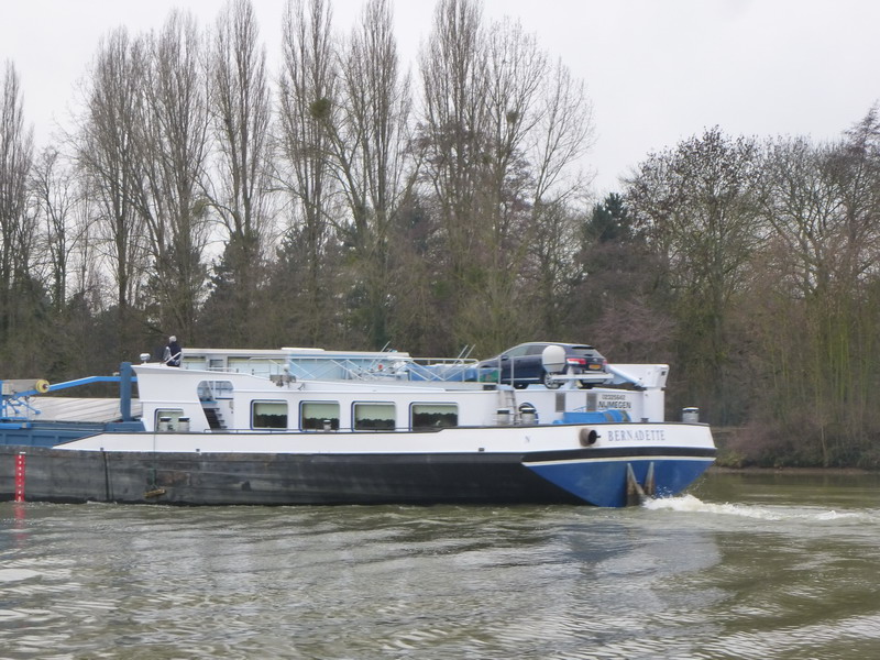 Bernadette , 110,00 x 11,45 x 3,45 , 3009 ton , Bouwjaar 2002 , Werf Centromost Stcznia Rzeczna in Plock ( Polen ) en De Gerlien – van Tiem in Druten ( Nederland ) , 1700 pk Mitsubishi en 791 pk MTU – van Tiem boegschroef , ex Bernadette , eigenaar Bernadette BV ( J.Pott ) in Nijmegen , ENI 02325642