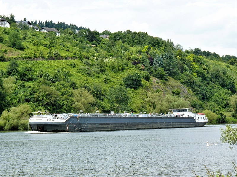 Ailena , 109,87 x 11,04 x 3,28 , 2657 ton , Bouwjaar 2004 , Werf Centromost Stocznia Rzeczna in Plock ( Polen ) en Gelria BV in Nijmegen ( Nederland ) , 1650 pk ABC en 650 pk Cummins - van Tiem boegschroef , ex Manus , ex Fluvius , eigenaar Navirom AG in Basel , ENI 02326743