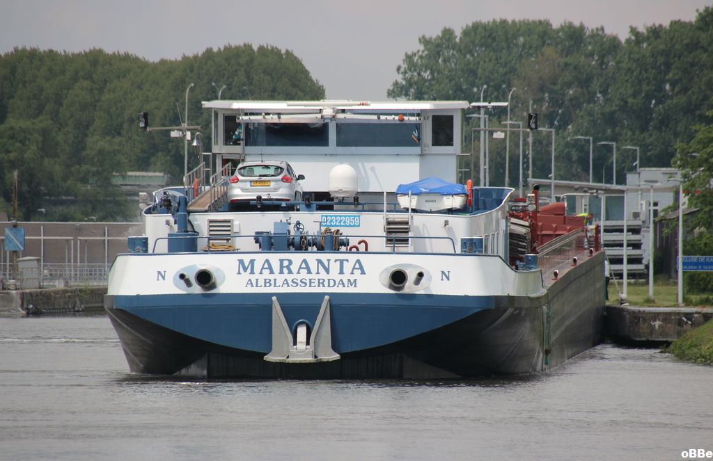 Maranta , 94,86 x 11,40 x 3,00 , 2379 ton , Bouwjaar 1997 , Werf Plocka Stocznia Rzeczna in Plock ( Polen ) en Dolderman BV in Dordrecht ( Nederland ) , 2 x 1379 pk Caterpillar en 608 pk Scania Veth-Jet boegschroef , ex Sterrenburg , eigenaar Maranta Shipping BV in Alblasserdam , ENI 02322959