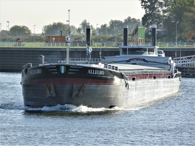 Allegro , 104,77 x 10,50 x 3,22 , Bouwjaar 1988 , Werf Plocka Stocznia Rzeczna in Plock ( Polen ) en Koedood Dieselservice in Hendrik Ido Ambacht , 1379 pk Caterpillar en 350 pk Mitsubishi – Verhaar Omega-Jet boegschroef , ex Myriam , ex Mignon , ex Laxans , ex Century , ex Princehof , eigenaar Vof. Bomar (J.M.E. Bouman) in Rotterdam , ENI 02322618.