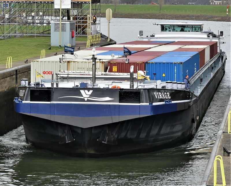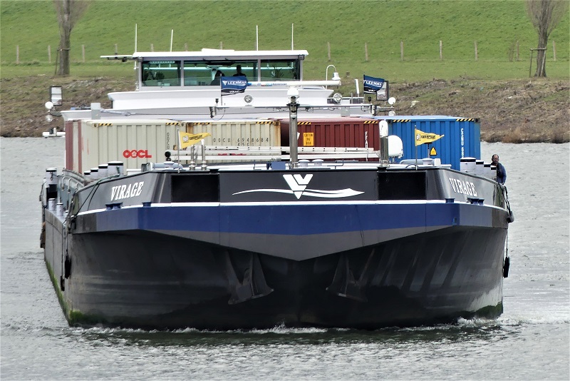 Virage , 110,00 x 11,40 x 3,50 , 3006 ton , Bouwjaar 1993 , Werf Societatea Comerciala Navol in Oltenita ( Roemenië ) en Weka Dane BV in Krimpen a/d Lek ( Nederland ) , 1835 pk Caterpillar en 510 pk Caterpillar Veth-Jet boegschroef , ex Eben-Haëzer , ex Koos , ex Vaya Con Dios , eigenaar Leenman Vissers Vof in Werkendam , ENI 02321028