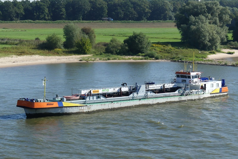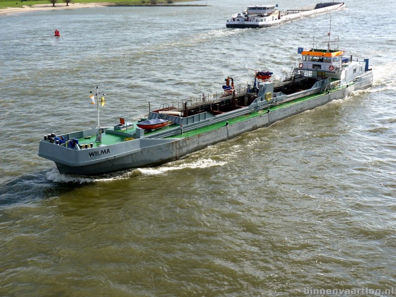 Wilma , 63,00 x 8,20 x 3,10 , 798 ton , Bouwjaar 2003 , Werf Societatea Comerciala Navol SA in Oltenita ( Roemenie ) en De Gerlien van Tiem BV in Druten ( Nederland ) , 2 x 476 pk Scania en 238 pk Scania boegschroef , eigenaar Krul & Zn Aannemingsbedrijf BV in Beesd , ENI 02325961
