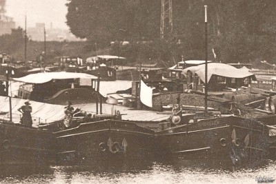 - vu de l'avant dans un barrage lors des grèves à Bougival, mais je n'ai pas l'année (1933 ou 1936, probablement) ; c'est celui de droite, avec la cambuse en chapeau de gendarme :