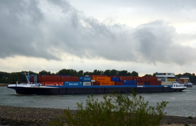 Sensation , 134,87 x 17,00 x 3,35 , 5008 ton , Bouwjaar 2003 , Werf Rybinsk Shipyard in Rybinsk ( Rusland ) , 2 x 1904 pk MTU en 1795 pk MTU Veth – Jet boegschroef , ex Alexandra , eigenaar Vof Seal (A.H.J.Durinck / R.Wagter) in Rotterdam , ENI 02326239