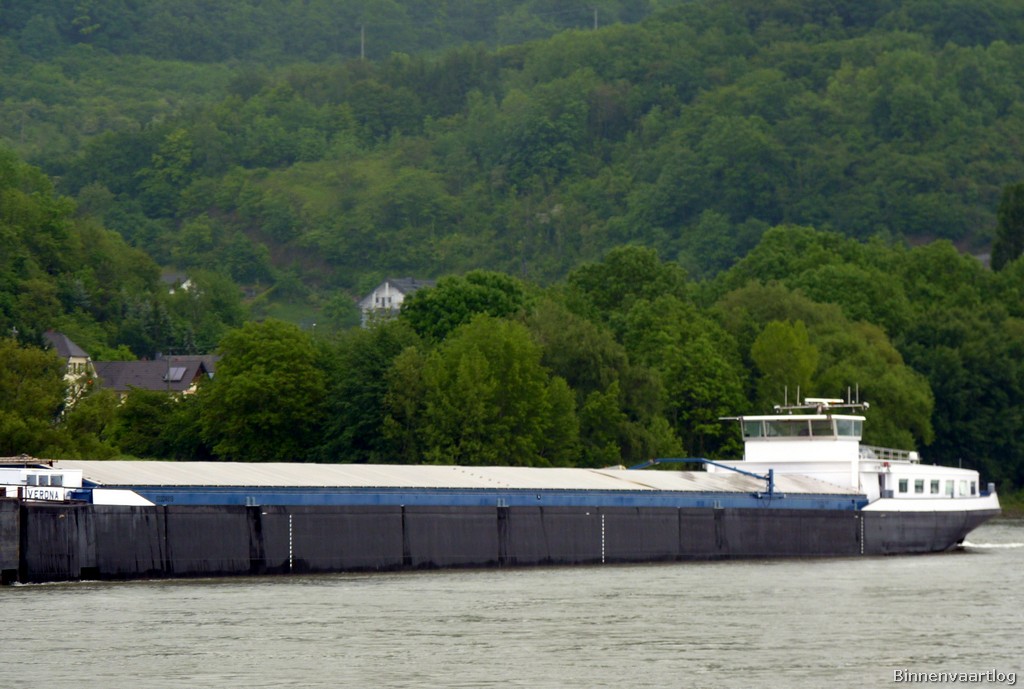Verona , 109,98 x 11,45 x 3,35 , 2989 ton , Bouwjaar 2000 , Werf JSC Volgograd Shipbuilding Plant in Volgograd ( Rusland ) en Dolderman BV in Dordrecht ( Nederland ) , 2 x 1521 pk Caterpillar en 462 pk Scania Veth-Jet boegschroef , eigenaar Pavema Scheepvaartbedrijf BV in Hendrik Ido Ambacht , ENI 02324819