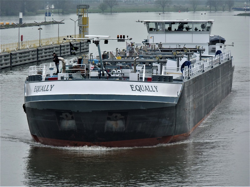 Equally , 105,00 x 11,45 x 3,40 , 2765 ton , Bouwjaar 2013 , Werf Bomex4M Shipyard in Zrenjanin ( Servië ) en TeamCo Shipyard in Heusden ( Nederland ) , 1700 pk Mitsubishi en 608 pk Caterpillar - Verhaar Omega-Jet boegschroef , eigenaar Amber Shipping International SA in Remich , ENI 02335593