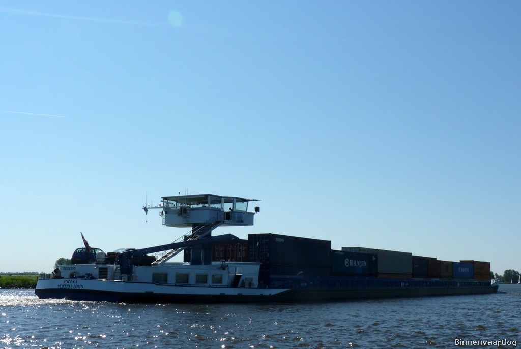 Prisa , 109,98 x 11,47 x 3,39 , 2912 ton , Bouwjaar 2005 , Werf Brodogradiliste in Apatin ( Serbia ) en Damen in Bergum ( Nederland ), 1795 pk MTU en 2 x 530 pk DAF – Ballegooy kopschroef , ex Eurotrans , eigenaar Vof. Duplo Shipping in Schipluiden , ENI 02212395