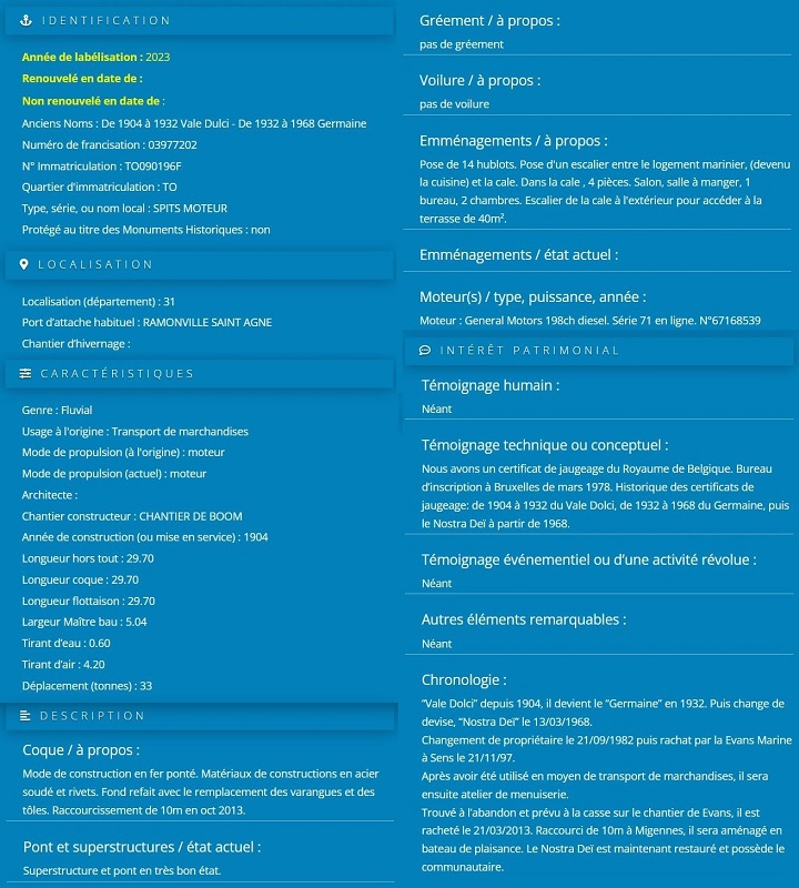 NOSTRA DEÏ - TO 090196 F - a été labellisé PATRIMOINE MARITIME ET FLUVIAL en 2023.
