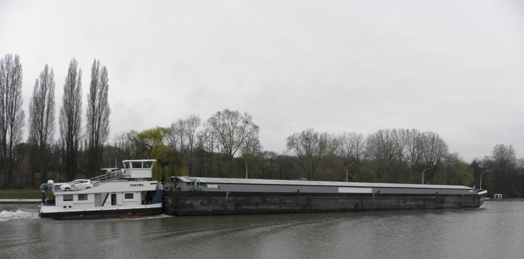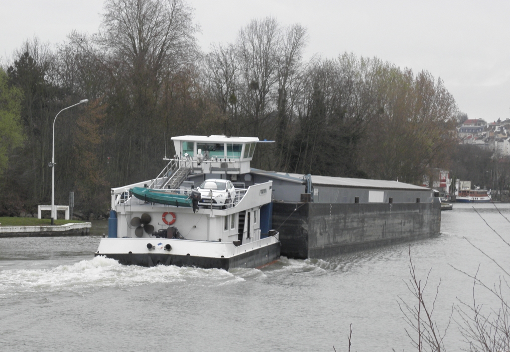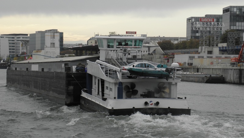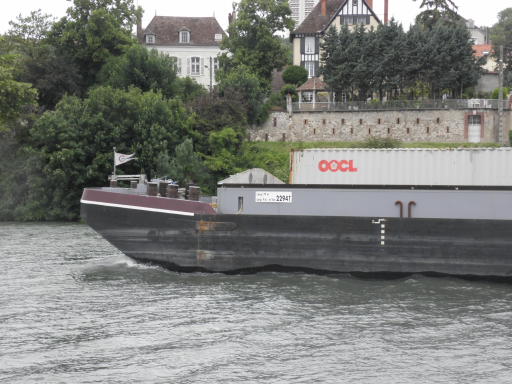 ULTIMO P 16 378 F equippé de 2 mitshubischi de 547 CV construit a GRAVE en Hollande en 1974 arrivée sur la seine en 1998 sous le nom DILLIGENTE puis NOORD ZEE .dans les meilleurs conditions de navigation avec 2200 TONNES le convoi peut atteindre une vitesse de 14 KLM/H .La barge porte 2294 T en port en lourd et peut prendre 99 EVP sur 3 couches construit a VILLENEUVE LE ROI en 1998 elle est equippée d'un propulseur DAF de 530 CV helice a plat