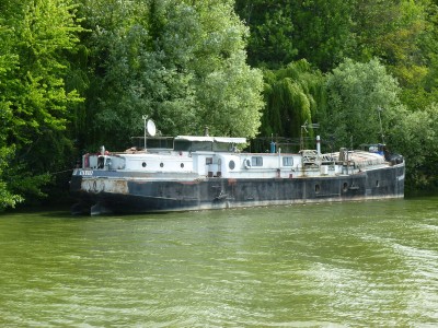 Amarré en amont de l'ancien barrage de Champlay (Yonne)...