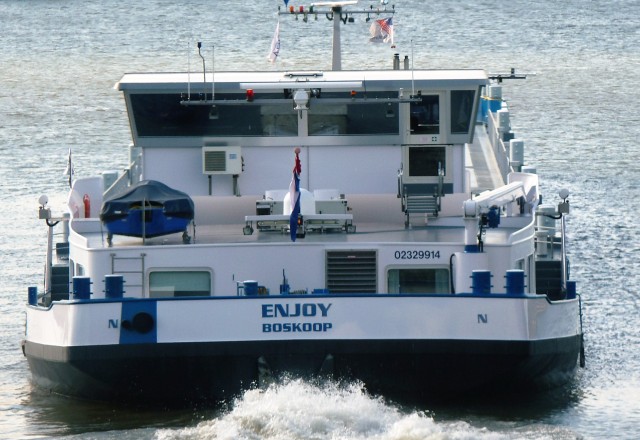 Enjoy , 110,00 x 11,40 x 3,11 , 2505 ton , Bouwjaar 2008 , Werf Barkmet Shipyard in Lovocice ( Czech Republic ) en De Waal BV in Werkendam ( Nederland ) , 1379 pk Caterpillar en 383 pk Caterpillar Verhaar Omega-Jet boegschroef , eigenaar Enjoy CV in Boskoop , ENI 02329914