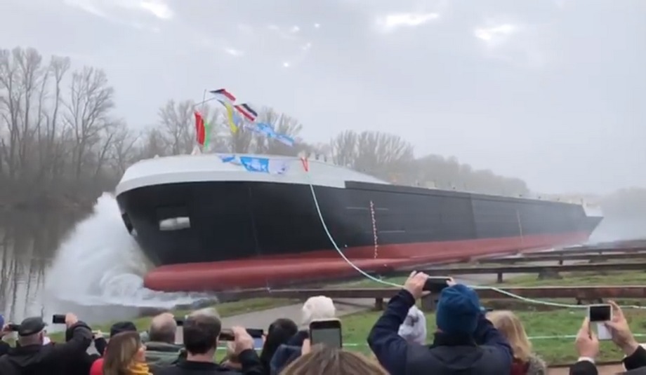 - ces deux-là sont des captures d'écran de la vidéo de la mise à l'eau, mise en ligne le 18 décembre 2019 :