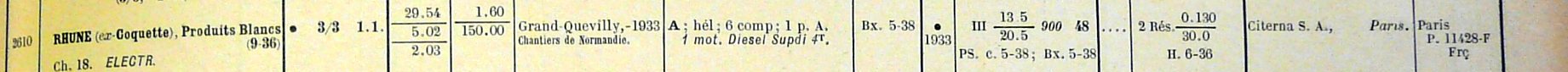 On peut lire moteur Spudi de 50 CV avec consommation horaire de 9l, capacité 200 (Hl), jaugé le 07/09/1933 à Rouen.