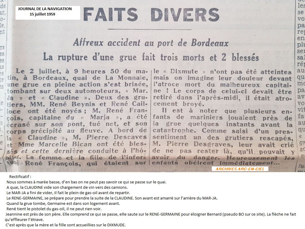 Après l’accident mortel de 1959, le bateau est vendu à l’entreprise Delcampo à Bordeaux.