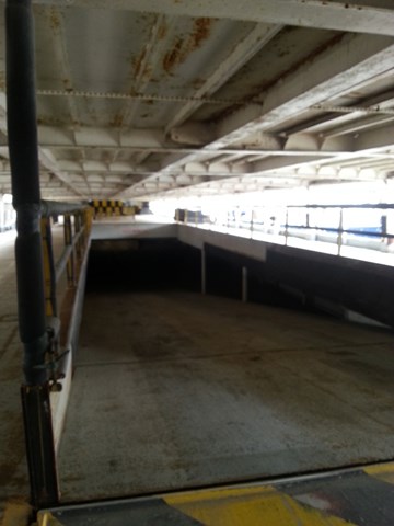 - Vue du pont principal vers le pont inférieur, rampe d'accès au fond de cale.
