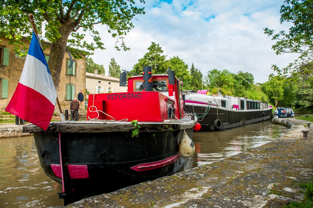 Le PITORINO a pris en charge le PROVENCE (moteur hors service) de Ramonville saint-Agne jusqu'à jusqu'à l'écluse de la Méditerranée et le bief de partage.