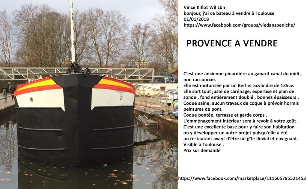 Après bien des changements de propriétaires et des périodes de quasi abandon, le PROVENCE est maintenant devenu un bateau d'habitation.