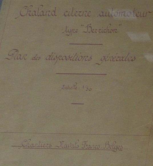 Par contre, avant de vous présenter les photos, je vous demanderai la discrétion la plus absolue sur ce bateau : en effet, les photos d'intérieur étant interdites au Musée du canal de Berry de Magnette, je ne voudrais pas avoir d'ennuis... Notez quand même que par respect pour les vieux documents présentés, je n'ai pas utilisé le flash (ceci expliquant la qualité moyenne des clichés, ainsi que les vitres derrière lesquelles ils sont protégés).
