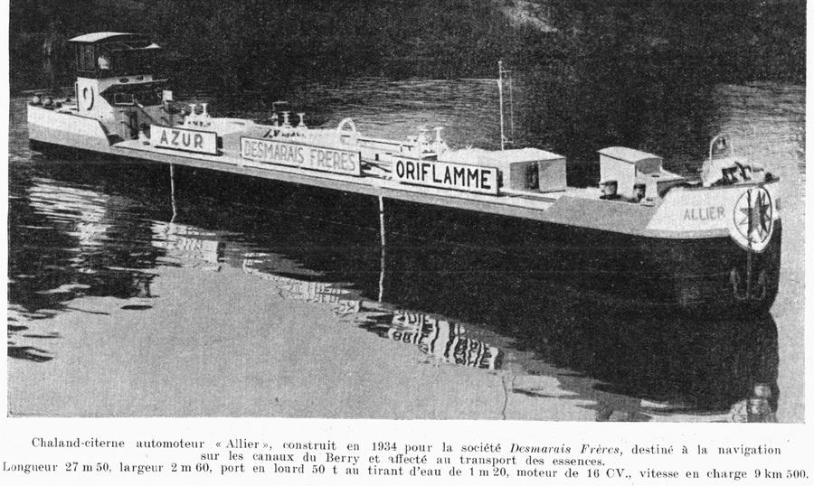 ALLIER construit en 1934 pour la société Desmarais Frères, destiné à la navigation sur les canaux du Berry et affecté au transport des essences