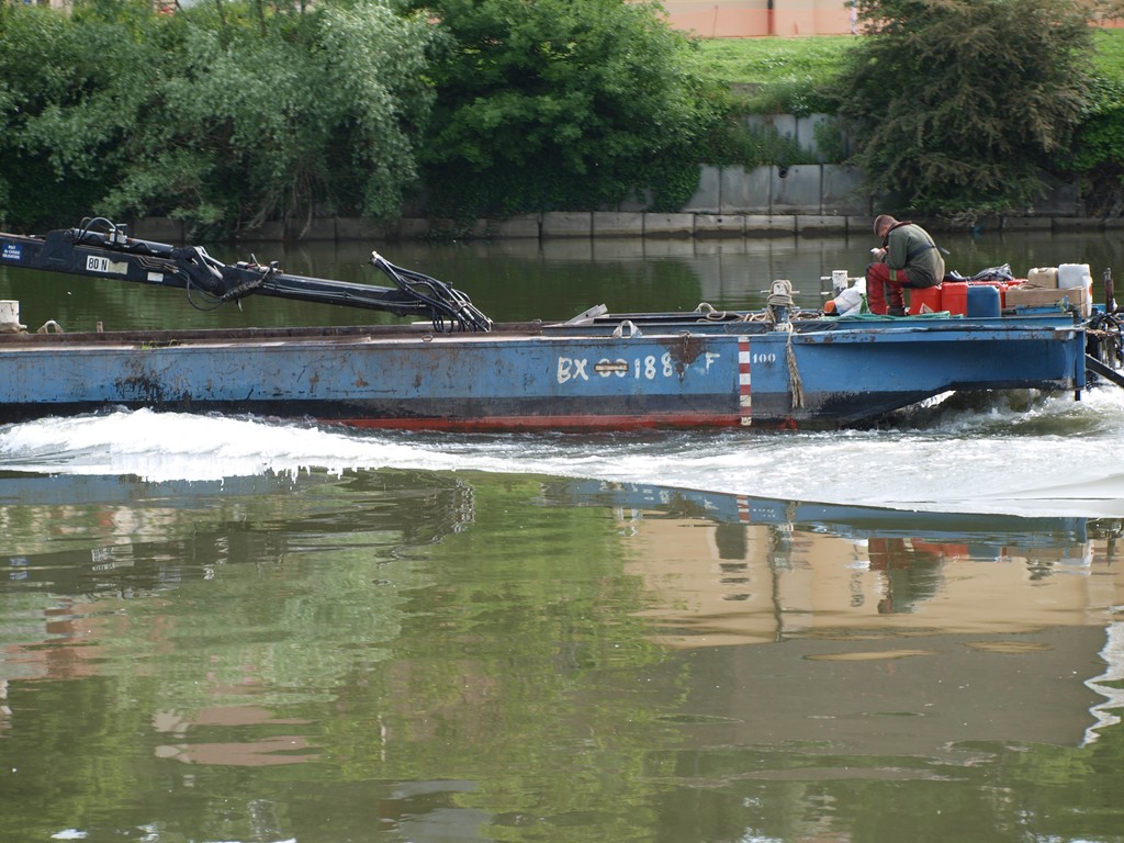 Devise HÉRACLÈS, BX-1889-F, barge de travail en acier de 17.00m x 3.95m, moteur 80CV, le chantier noté est IVECO ( là j'ai un doute)