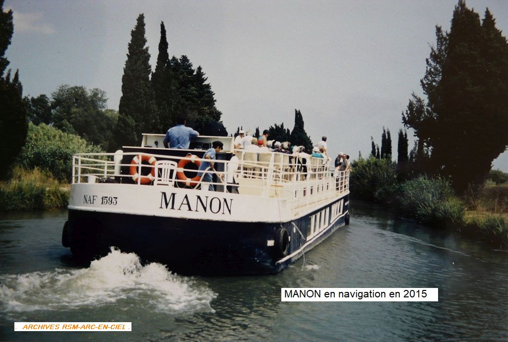 ‘’La MANON, NA1541F a été construite dans les années 1960 au chantier Merré à Nort-sur-Erdre (44) pour la Sté Rennaise de Dragages. Elle était utilisée pour le transport des sables et granulats.