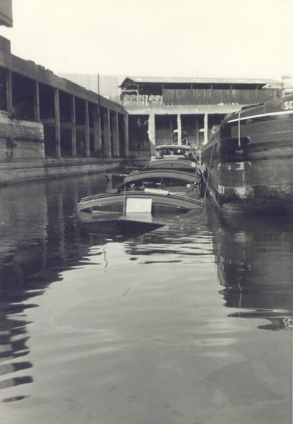 Pour le Vixit, avec le Père on décollait d'à-bord du ponton-logement de l'HPLM on venait de dire au revoir au "Tonton", lorsque l'on a entendu la paquet de tôle tomber, le temps de traverser la gare d'eau, il touchait déjà le fond, heureusement qu'il n'y avait pas beaucoup d'eau, l'arrière s'est maintenu hors d'eau. On est resté pour le renflouement et on l'a monté à Chalon où il a été remis en état aux Chantiers Franco-belge.
