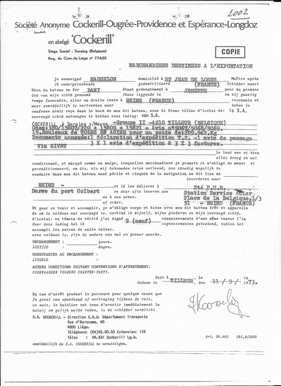 Pour Guy , sur l'original négociable du connaissement fluvial,