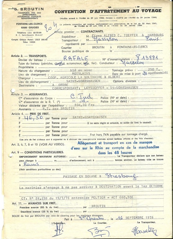 Re: CONVENTION D'AFFRETEMENT