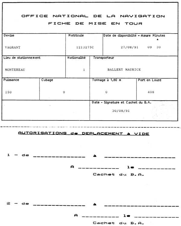 une derniere dans le trou de TAVERS ,affretes pour ROUEN le 14 AOUT 1991..