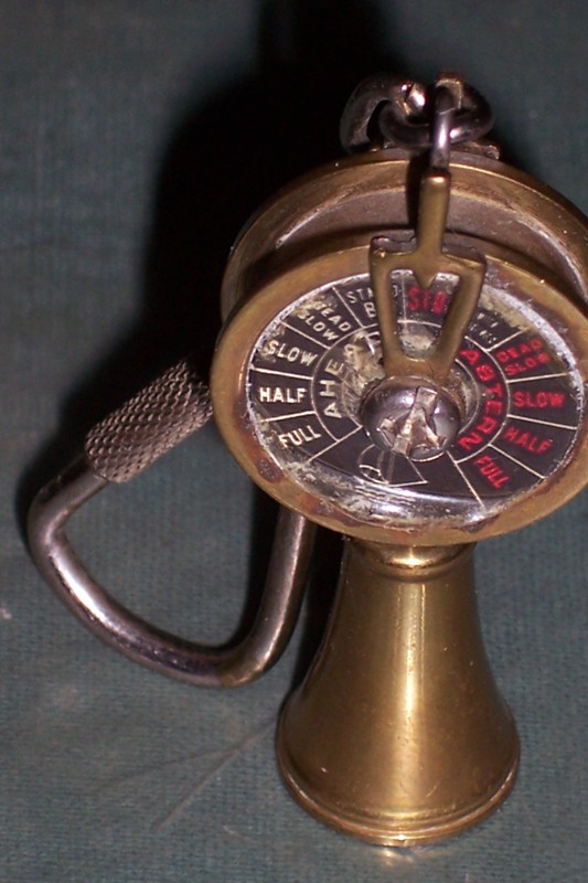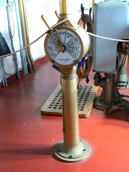 Allez, pour faire bonne mesure, voici une autre photo de chadburn, aussi appelé transmetteur d'ordre ou encore télégraphe, qui lui sert uniquement à envoyer les ordres de marche à la machine, lorsque celle-ci n'est pas directement commandée depuis la passerelle mais par du personnel de quart en salle des machines.
