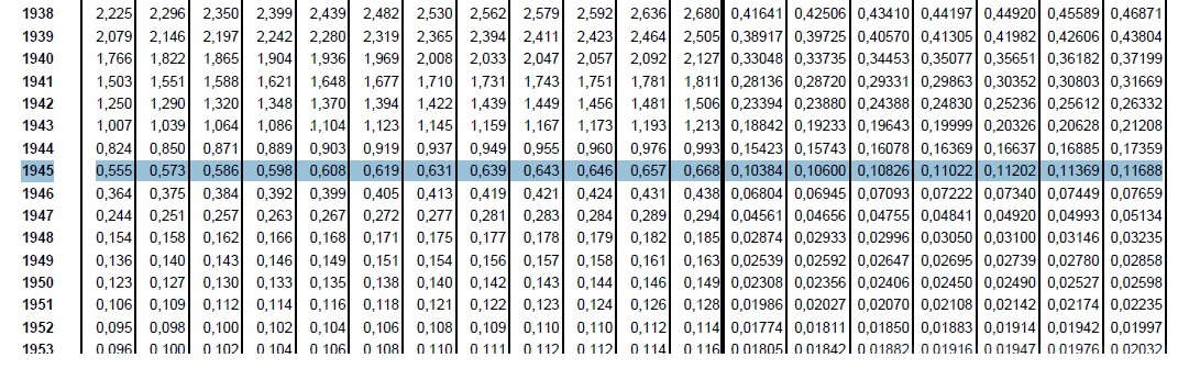 1 Franc de 1945 équivalait à 0,11878 € en 2010 (Source INSEE)