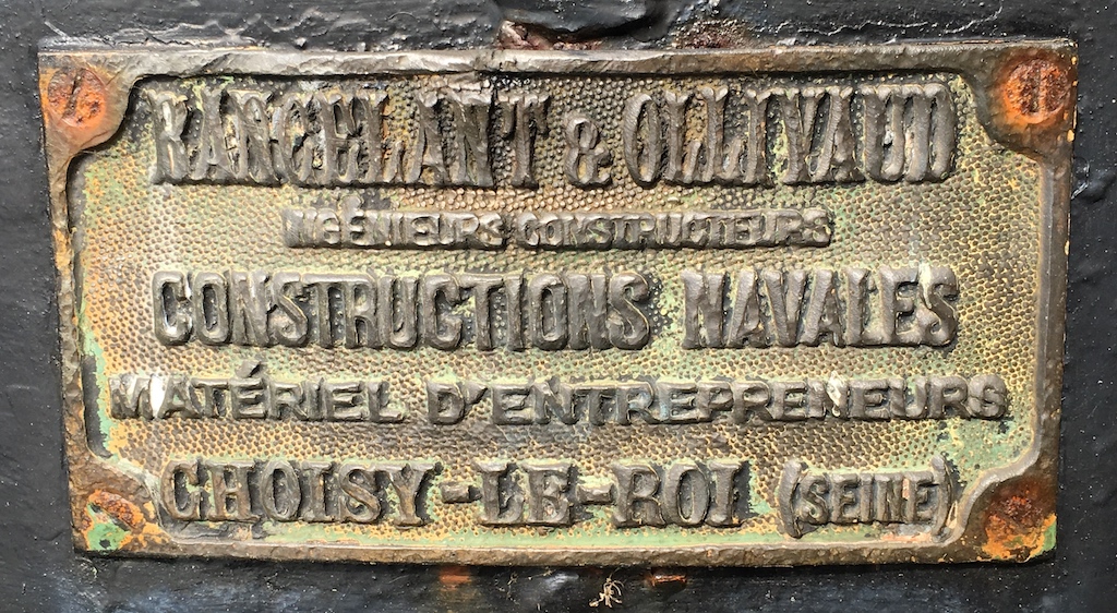 Plaque Rancelant & Ollivaud, vue sur un tout petit bateau, 'Minus', ancien remorqueur ou passager?