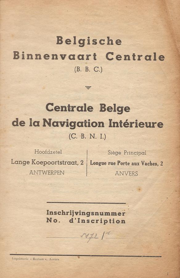 écrit à la fois en Flamand et en Français et délivrée par la "Centrale Belge de la Navigation Intérieure" dont le siège principal est à Anvers :