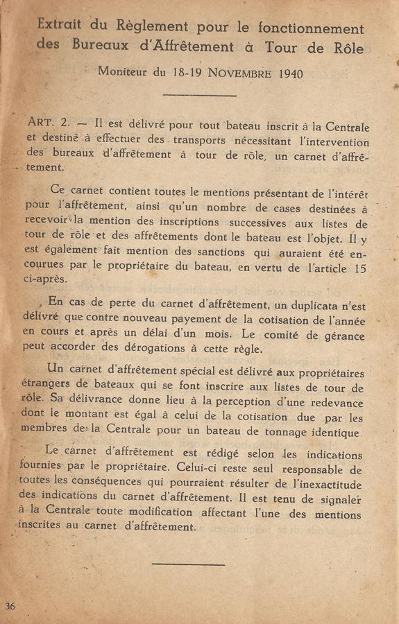 Et enfin en dernière page, un extrait du règlement des bureaux d'affrètement qui donne la raison d'être de ce petit carnet :