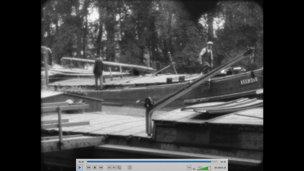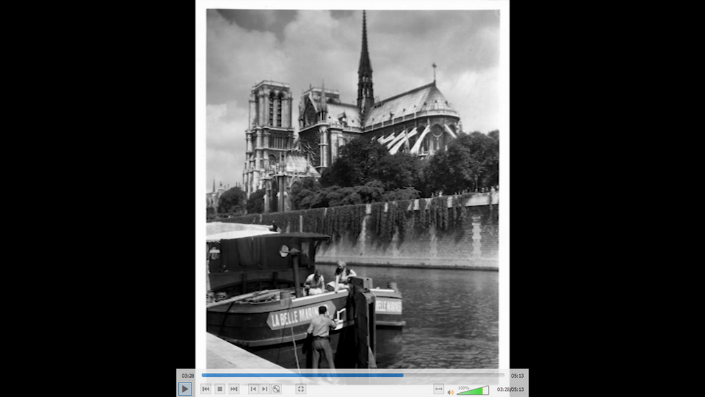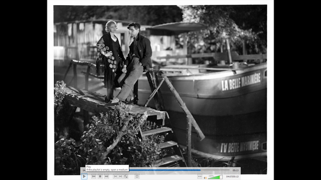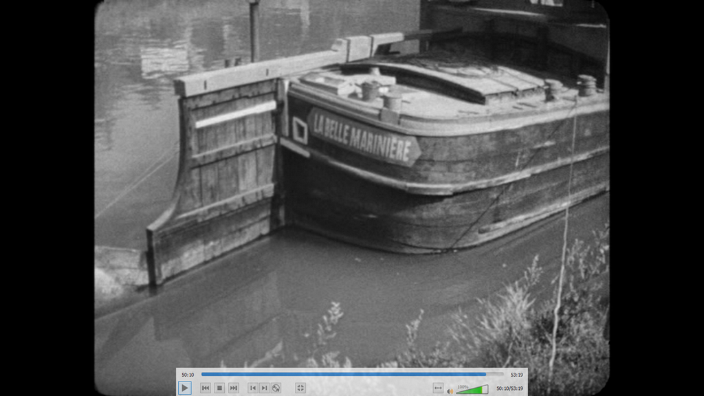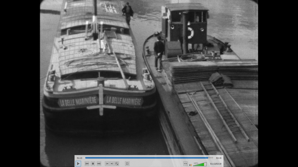 voici une capture d'écran d'un remorqueur dans Paris.extrait du film LA BELLE MARINIERE de 1932