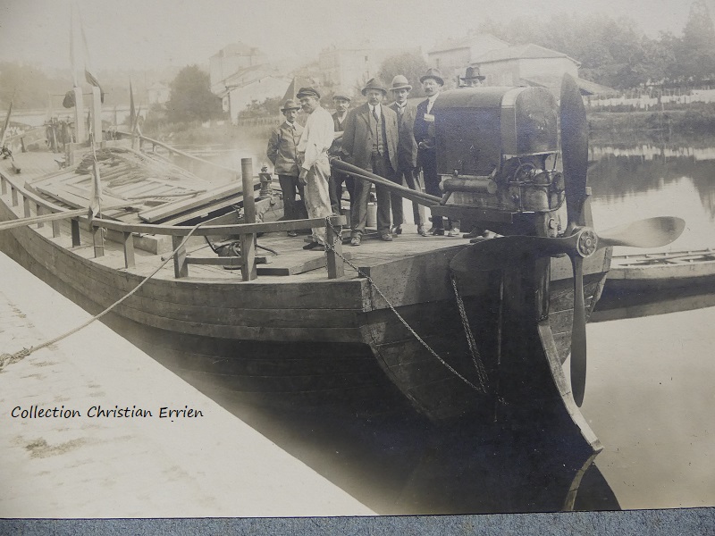 Je vous présente cette étonnante photographie montrant un coureau de l'Isle de l'usine de Laubardémont équipé d'un propulseur à hélice aérienne comme un avion.