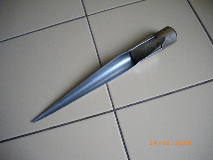 Ce truc pointu, avait une utilite bien precise.(surtout pendant les annees 40) Maintenant, l'on dit "tombe du camion", et avant je pense que l'on disait "pris dans le sac". Il suffisait d'introduire cet outil, avec douceur et delicatesse dans un sac en toile de sucre et d'en recolter qq grammes pour mettre dans le cafe.