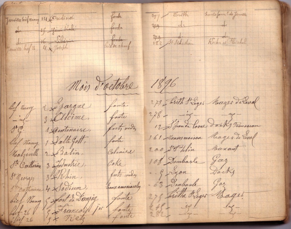 VILLE DE BAR-LE-DUC : les lieux de provenance et destination semblent confirmer qu'ils étaient (en partie?) attachés à des lignes régulières entre Paris et l'Est de la France, même si je ne sais pas où sont les "Docks" mentionnés en destination... Enfin si, ça doit être les Magasins Généraux (de l'HPLM?), au port Saint-Georges à Nancy (confirmé par la colonne la plus à gauche et la carte postale ancienne ci-dessous)!