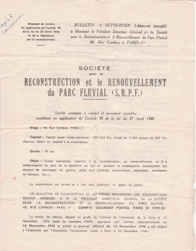 L'on peut lire : syndicat national des patrons bateliers. cftc "je sers"
