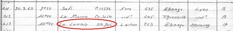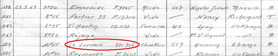 - avalant le 23 mars, chargé de 259t de clinker en provenance d'Héming, pour Ébange :