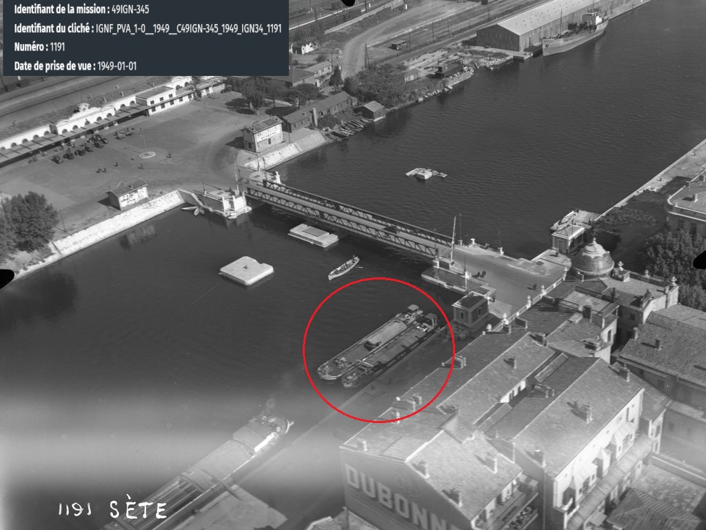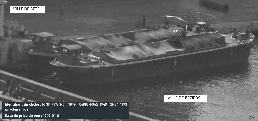 Sur deux photos visibles sur le site de Géoportail, Remonter le temps, on peut voir deux Fluviales (Atlas en 30m) amarrées dans le port de Sète.