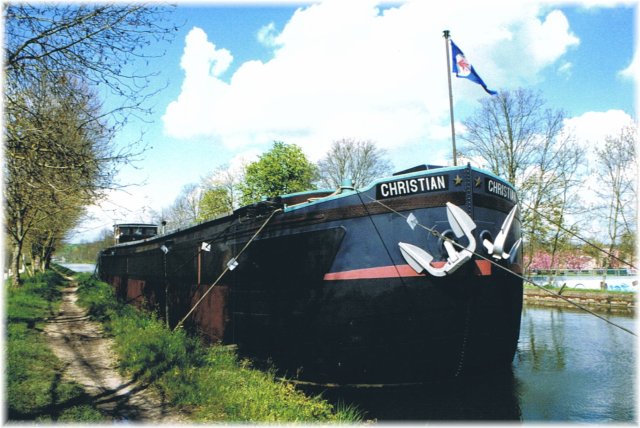 Quand j'ai publié cette carte postale sur Facebook, dans un groupe consacré aux voies navigables de l'Est de la France, Sandy V. a indiqué que le bateau à gauche, c'est-à-dire le CHRISTIAN de ce sujet, était pour lui le CLA JAC ex ILL, bateau de son grand-père, et encore plus à gauche, le TALCIA, gros numéro de son oncle.