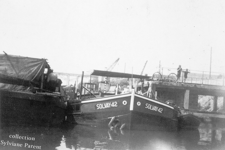 Donc SOLVAY 41 ou 42, construit en 1907 ou 1903, et matricule NY2429F ou NY2431F à son époque "Solvay" (info livre de Mme Parent). Racheté par l'usine de Dombasle (54) à l'usine de Sarralbe (57) après la première Guerre mondiale (l'usine de Sarralbe étant en territoire annexé, les bateaux ont aussi été construits en territoire annexé) .