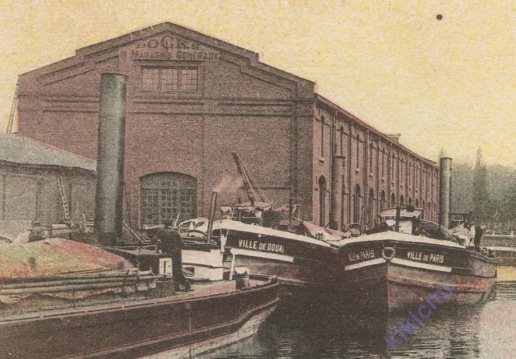 Le VILLE DE PARIS aux Docks de Lille (Magasins Généraux) sur une Carte Postale Ancienne colorisée :