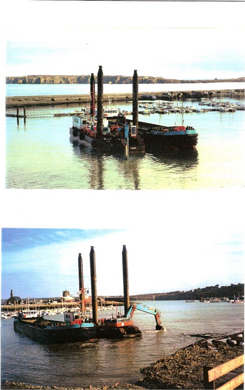 Cette pelle a été embarquée à la réception du ponton et remplacée ensuite par des Liebherr 974 la dernière en date étant une 974 sur tourelle.