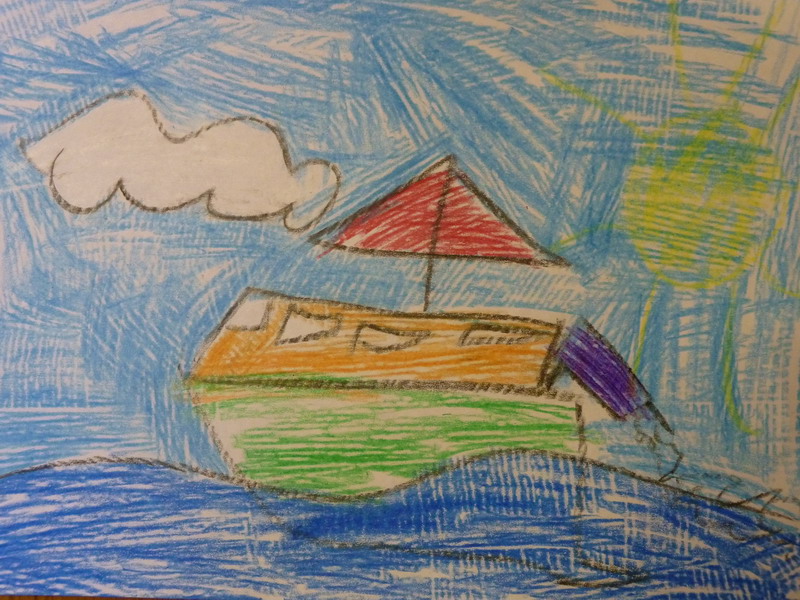 Dessiné à l'âge de 11 ans, ce souvenir de vacances de chez mes grand-parents. On faisait souvent une promenade sur les bords de l'Elbe, regardant les bateaux qui passaient. Des cargos et porte-contenaires pour Hambourg. Mais aussi des petites voir minuscules péniches...