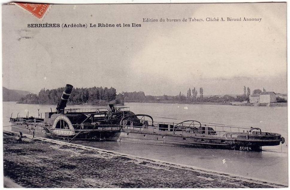 Carte postale du PELVOUX, longeant l'île de La Barthelasse, avec les symboles d'Avignon : le Pont, le Palais des Papes et Notre-Dame-des-Doms, envoyée l'avant-veille de Noël 1908.